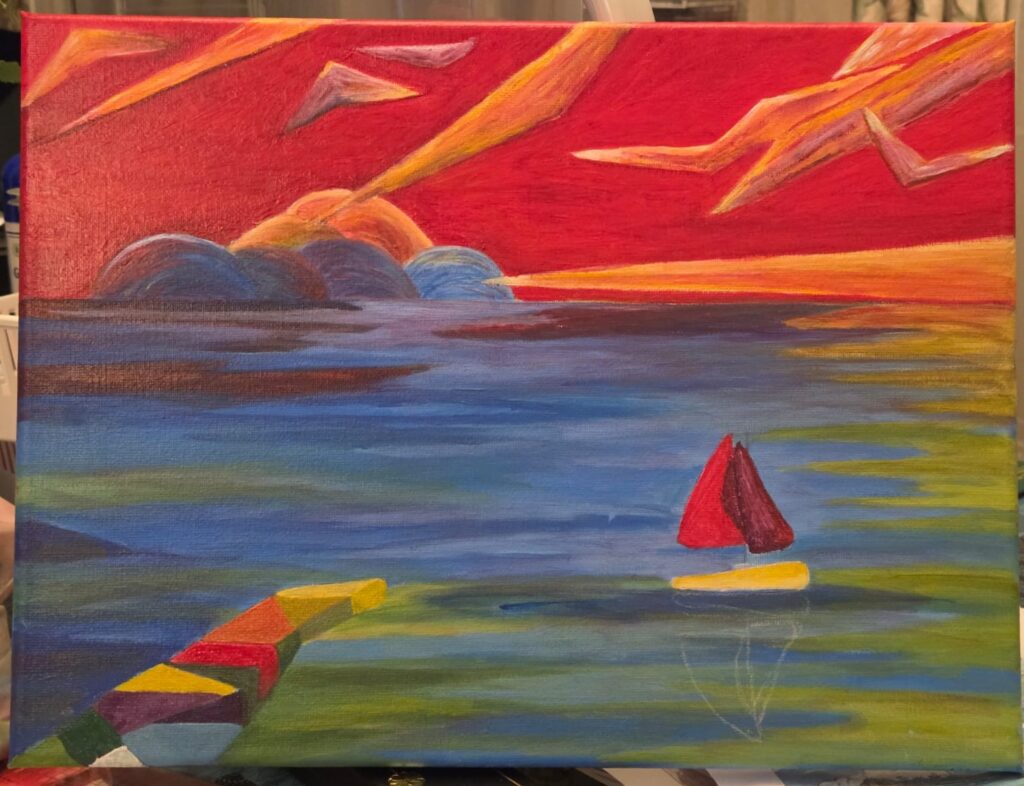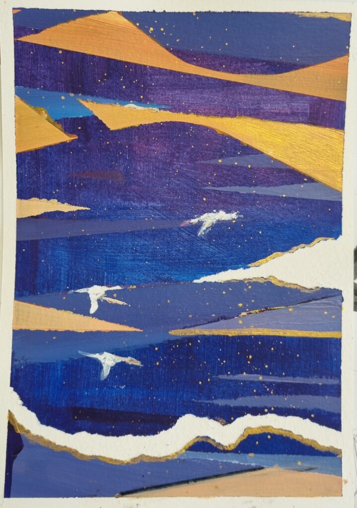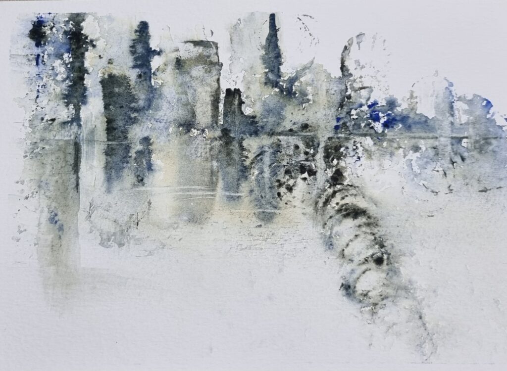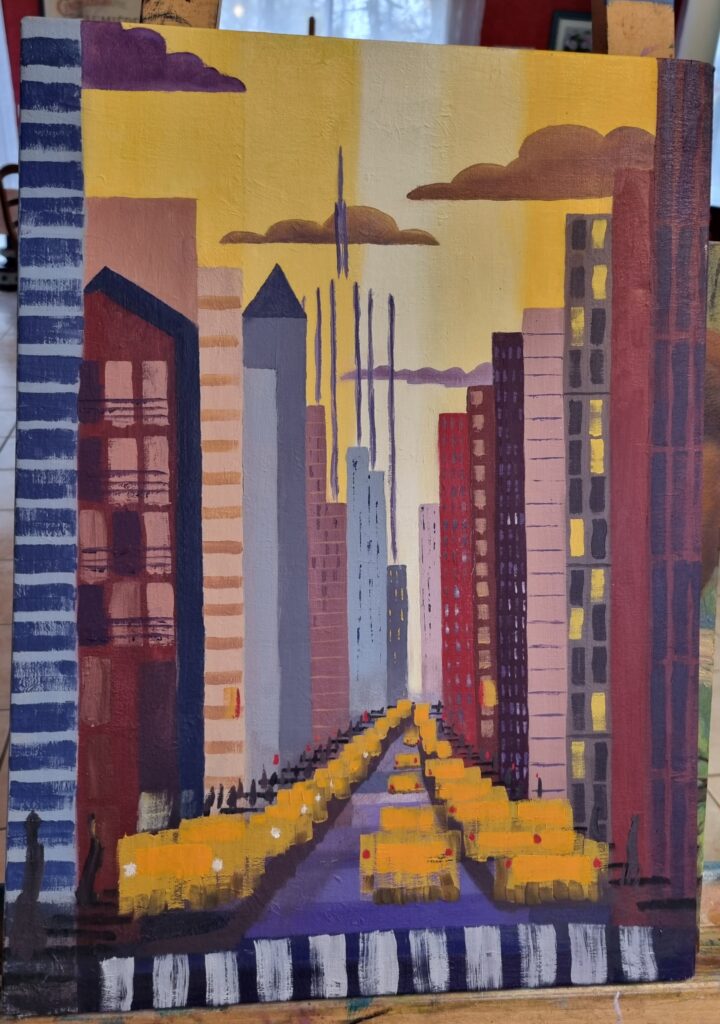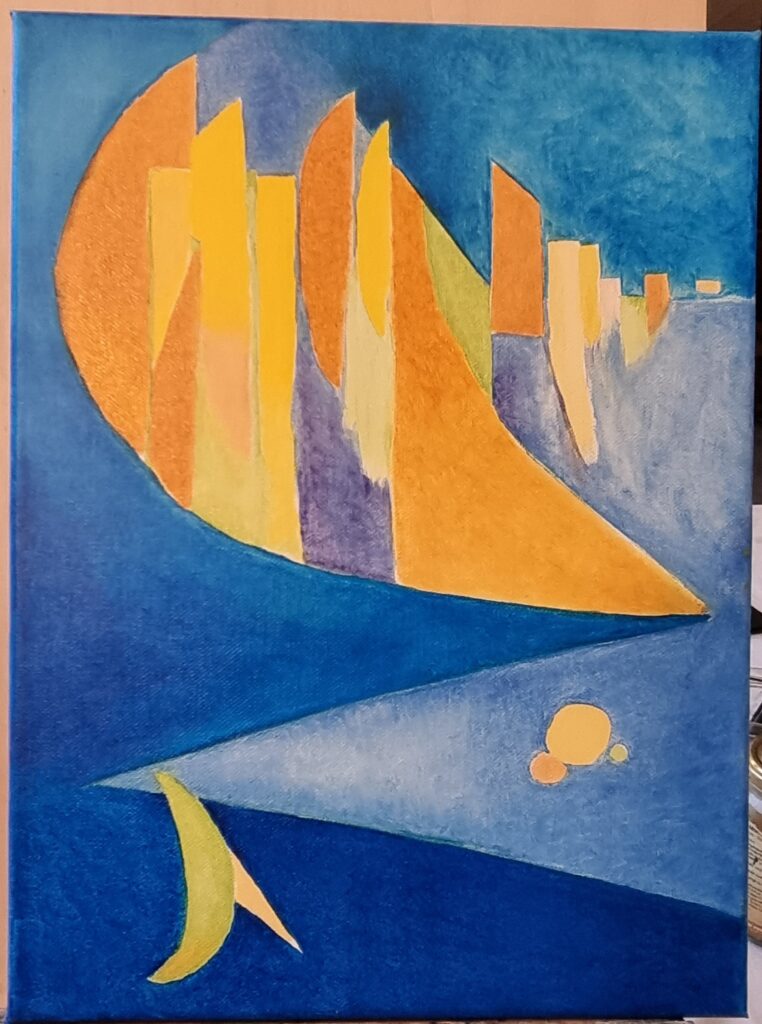 Chacun a commencé par étudier la photo, et à faire des schémas de construction de son tableau sur une feuille de la taille de son support. Puis des essais de couleur ont été faits avant de reporter sur le support définitif et à la peinture proprement dite