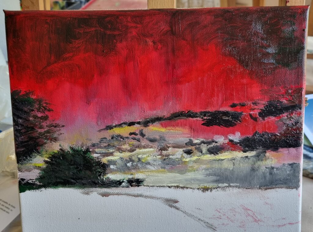 - On a vu comment s’y prendre à l’huile et à l’acrylique (de préférence avec un retardateur), mais aussi à l’aquarelle et au pastel sec et on harmonise ensuite l’ensemble du tableau. Aucune zone n’est vraiment finie du 1er coup