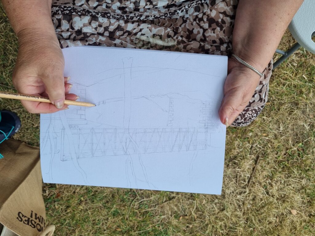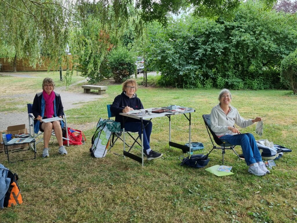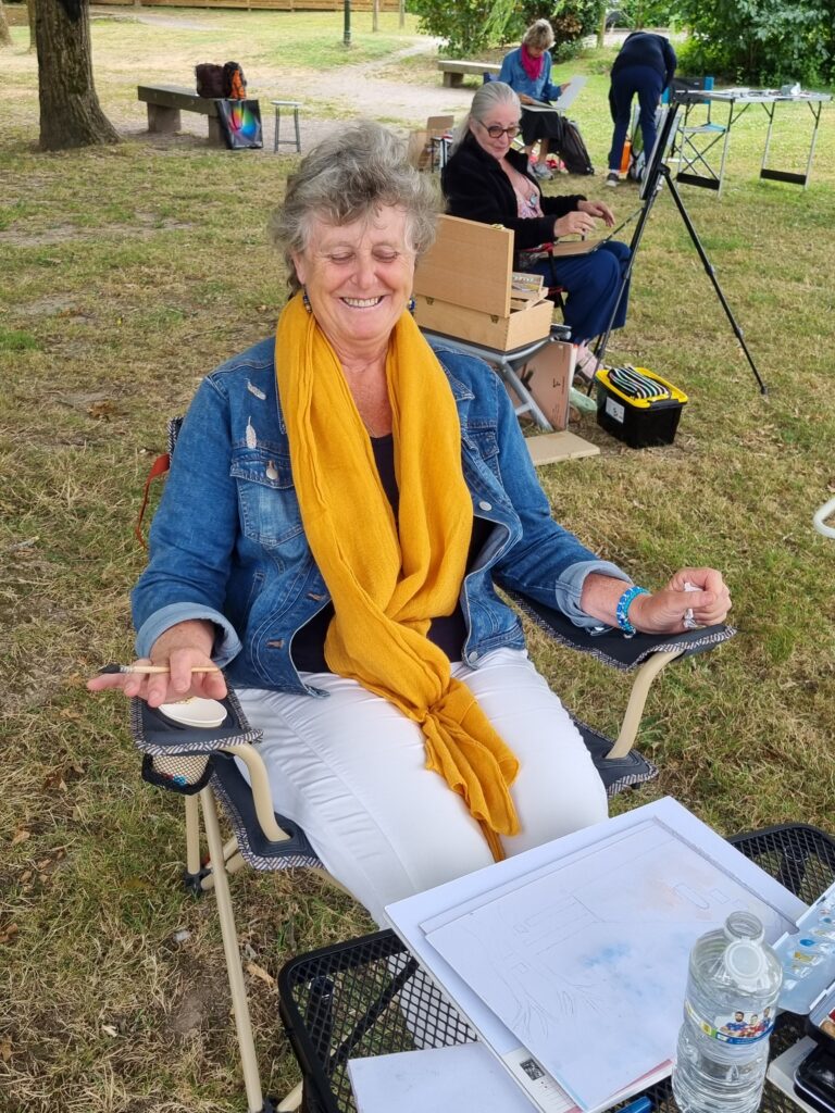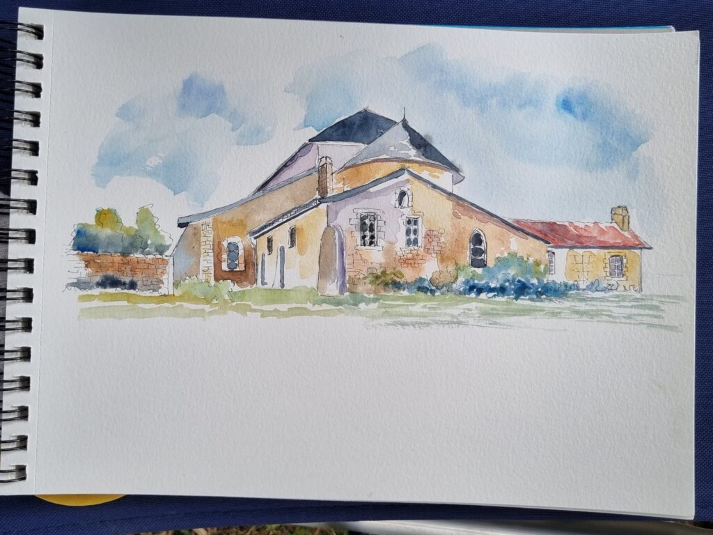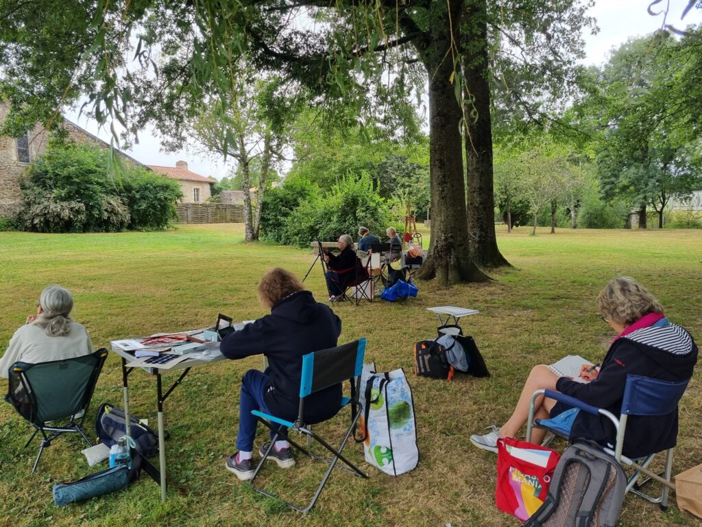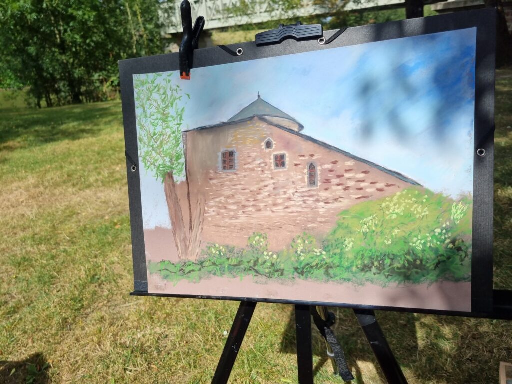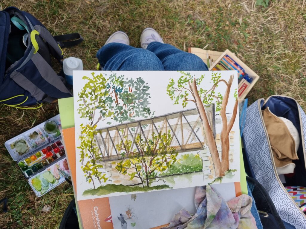 On a repéré le meilleur site pour avoir plusieurs sujets différents à dessiner et à peindre. Notre choix s’est porté sur l’arrière de l ‘abbaye, le jardin des simples et le pont au-dessus de la rivière